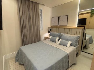 O Residencial Vigóre oferece apartamentos de 53 a 54 m², com 2 dormitórios, 1 banheiro e 1 vaga de garagem. As plantas foram projetadas para otimizar o uso do espaço, proporcionando conforto e funcionalidade.
